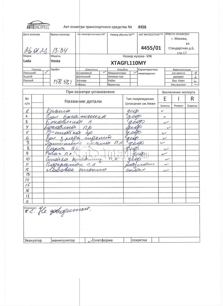 | Крышка багажника - заменить (снята | 5604010.24 | 46180 |