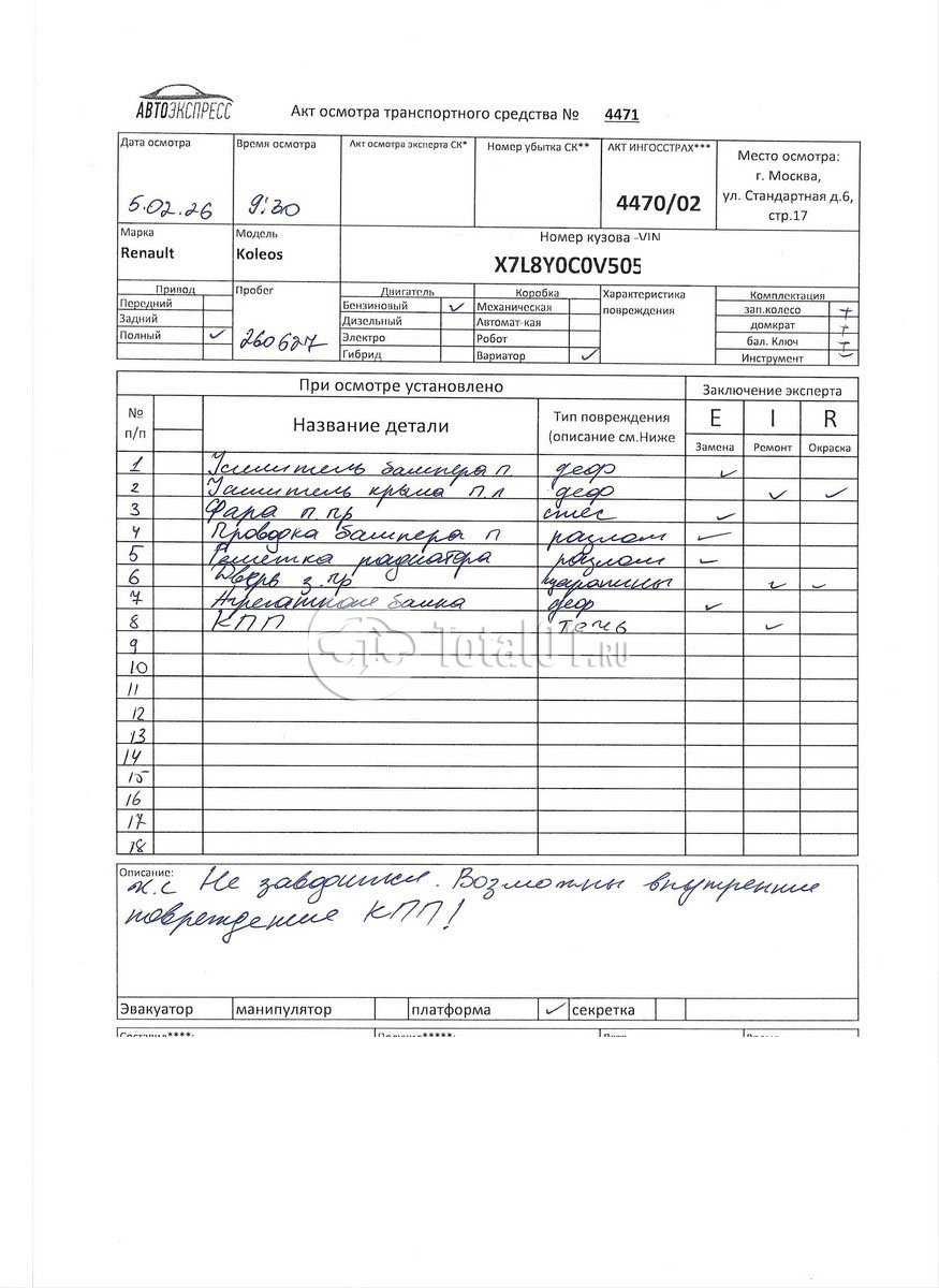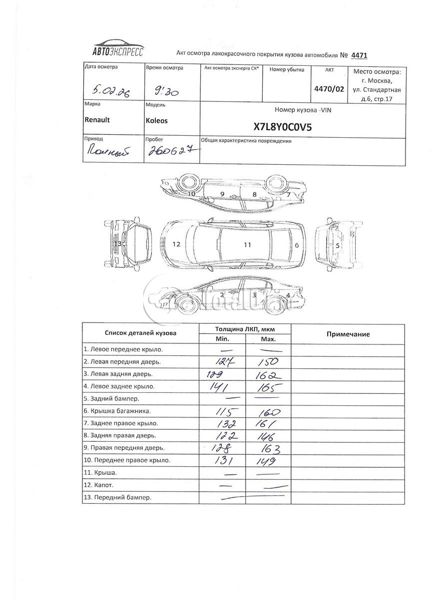 | Арка колесн п л.отремонтировать | 1119 | 20 |