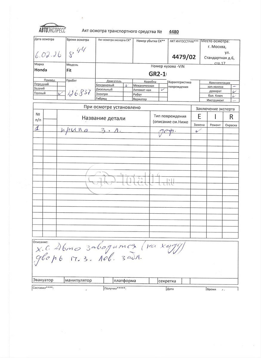 ПТС: Не передан (выдана справка). Вин номер предоставляется по запросу,направленному на адрес man4@total01.ru. Стоянка: ул.Стандартная, д.6, стр.17. Счет выставляется автомагазином ООО «Блицкар». (Сумма НДС будет указана в счет фактуре). Авто после ДТП, возможны скрытые повреждения. Гарантии юридической чистоты. Запчасти с авто отдельно не продаются. Цены по телефону не обсуждаются. ДКП и ПТС(если не изъят в ГИБДД) находятся в Москве. Возможности отправки документов нет. Для получения ДКП и ПТС(если не изъят в ГИБДД) потребуется ваше личное присутствие или нотариальная доверенность на вашего представителя. Левый бок; возможны скрытые повреждения. Ранее автомобиль находился в собственности физ.лица. Количество владельцев: н/у.
