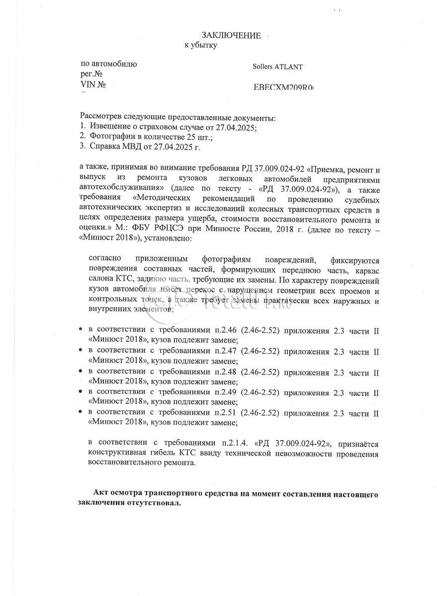 | Состояние ПТС | Отсутствует |