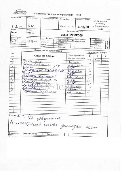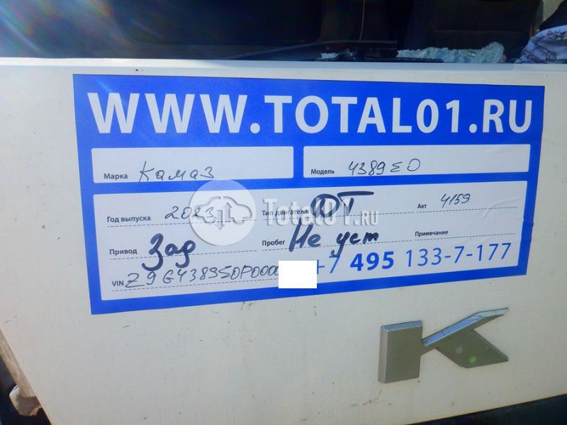 Камаз 4389 E0. ПТС: Не передан (выдана справка). Вин номер предоставляется по запросу,направленному на адрес man4@total01.ru. Стоянка: ул.Стандартная, д.6, стр.17. Счет выставляется автомагазином ООО «Блицкар». (Сумма НДС будет указана в счет фактуре). Авто после ДТП, возможны скрытые повреждения. Гарантии юридической чистоты. Запчасти с авто отдельно не продаются. Цены по телефону не обсуждаются. ДКП и ПТС(если не изъят в ГИБДД) находятся в Москве. Возможности отправки документов нет. Для получения ДКП и ПТС(если не изъят в ГИБДД) потребуется ваше личное присутствие или нотариальная доверенность на вашего представителя. Ранее автомобиль находился в собственности юр.лица. Количество владельцев: н/у. Пробег: н/у. Правый передний удар; кабина; возможны скрытые повреждения.