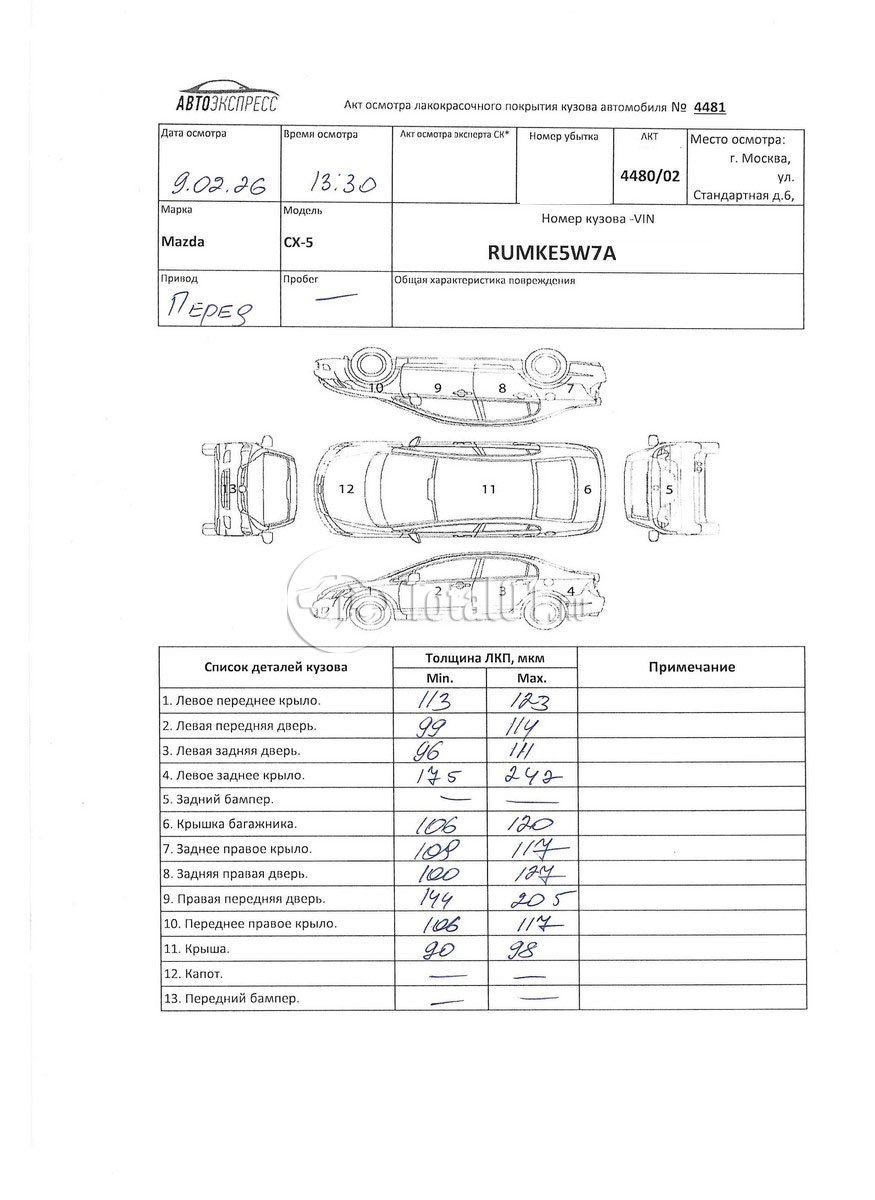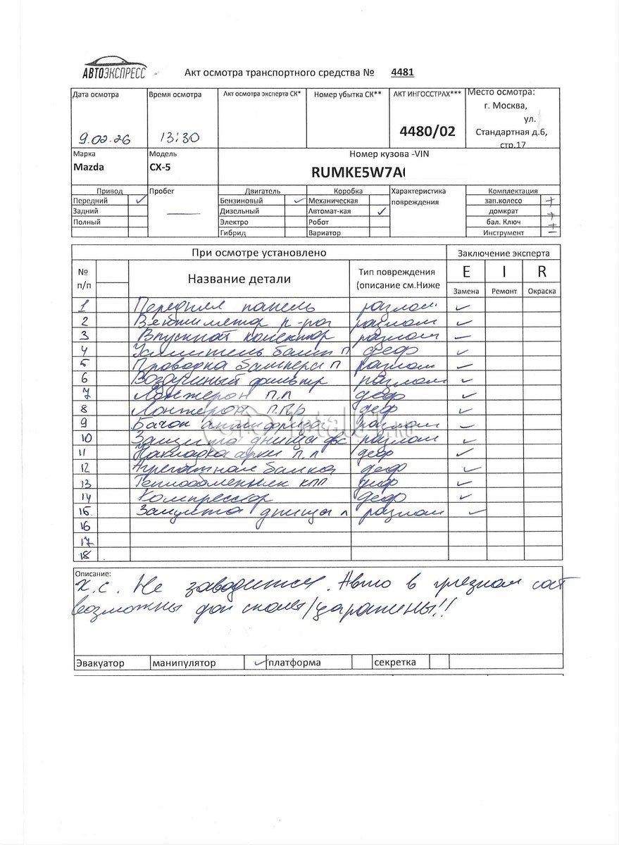 | Капот - заменить | S0503X-R-X | 5 |