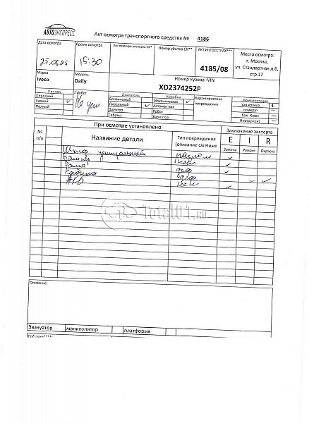 Фургон промтоварный. ПТС: Не передан (выдана справка). Вин номер предоставляется по запросу,направленному на адрес man4@total01.ru. Стоянка: ул.Стандартная, д.6, стр.17. Счет выставляется автомагазином ООО «Блицкар». (Сумма НДС будет указана в счет фактуре). Авто после ДТП, возможны скрытые повреждения. Гарантии юридической чистоты. Запчасти с авто отдельно не продаются. Цены по телефону не обсуждаются. ДКП и ПТС(если не изъят в ГИБДД) находятся в Москве. Возможности отправки документов нет. Для получения ДКП и ПТС(если не изъят в ГИБДД) потребуется ваше личное присутствие или нотариальная доверенность на вашего представителя. Правый передний удар; кабина; возможны скрытые повреждения. Ранее автомобиль находился в собственности юр.лица. Количество владельцев: н/у. Пробег н/у.