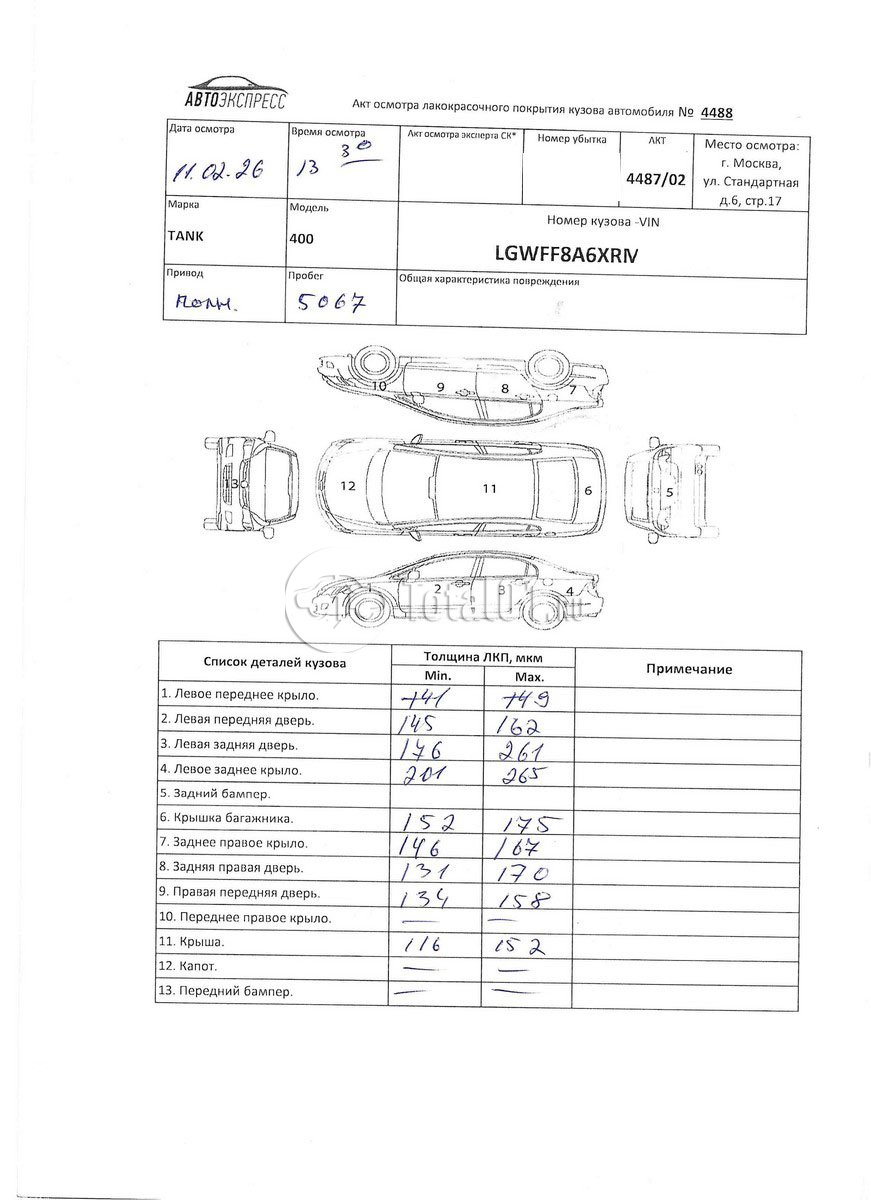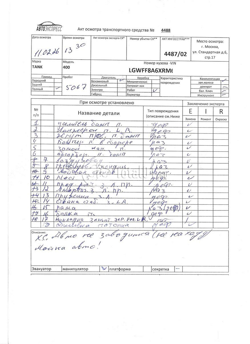 | Бампер п - заменить | ** | 9 |