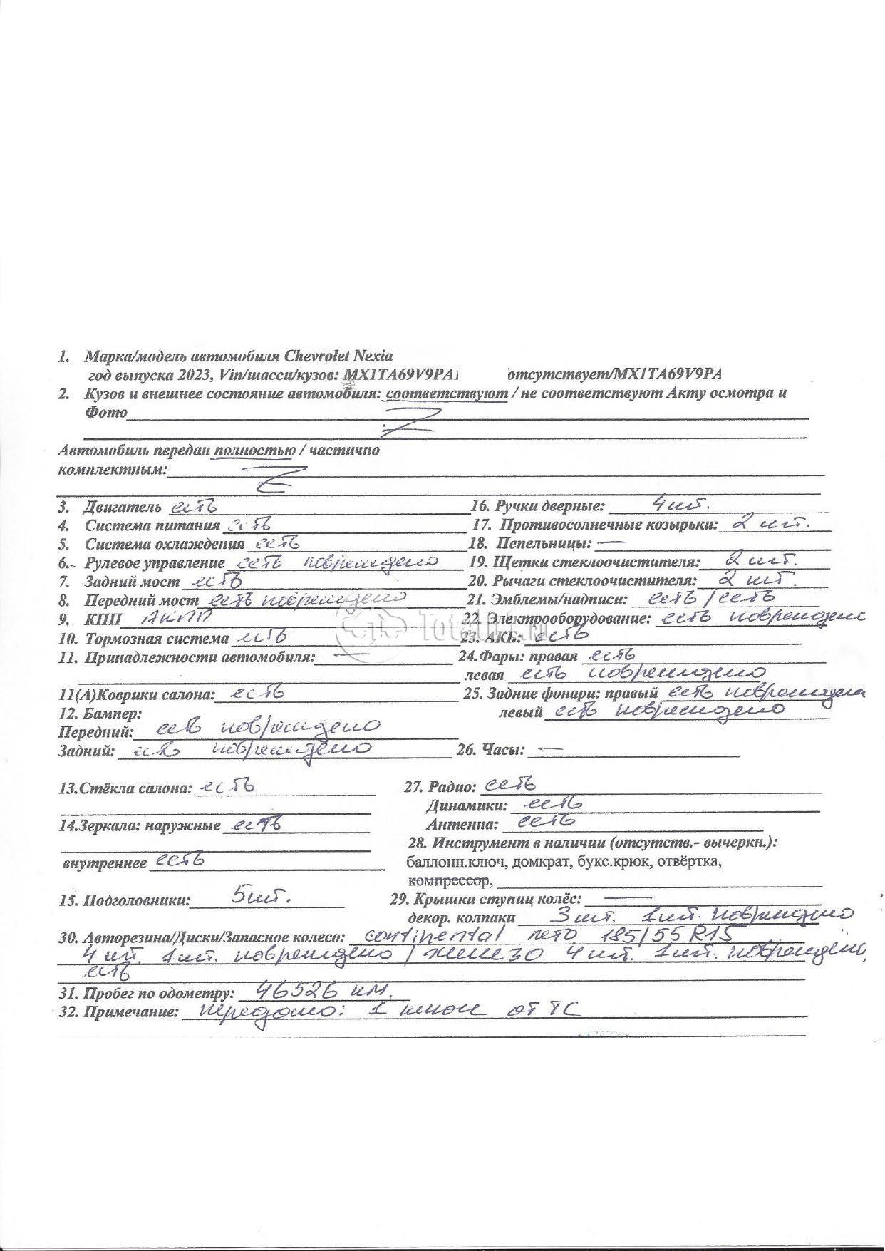 | Состояние ПТС | Отсутствует |