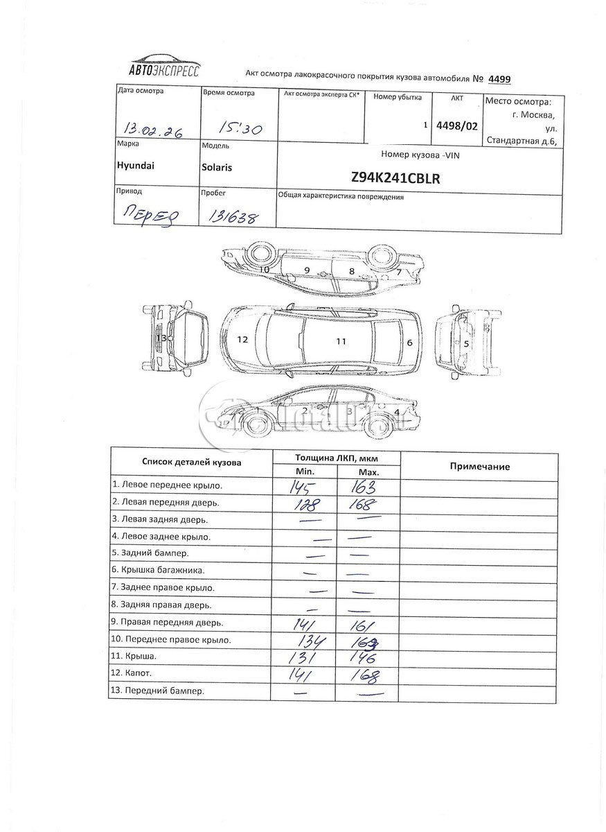 | В-стойка л.отремонтировать | | 40 |