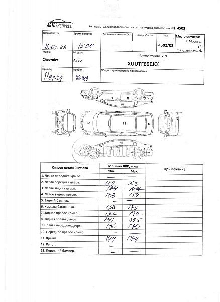| Состояние ПТС | Отсутствует |