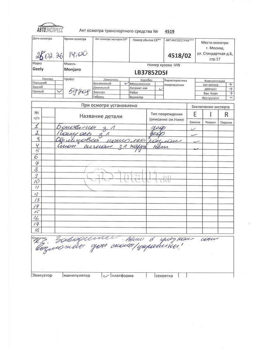 | Облицовку бампера з заменить | Б/Н | 2 |