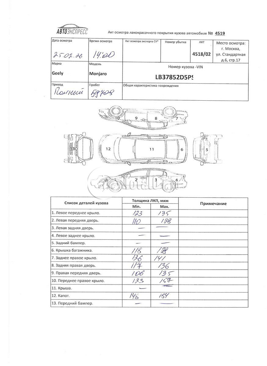 | Крышка багажника - с/у | Б/Н | 3 |
