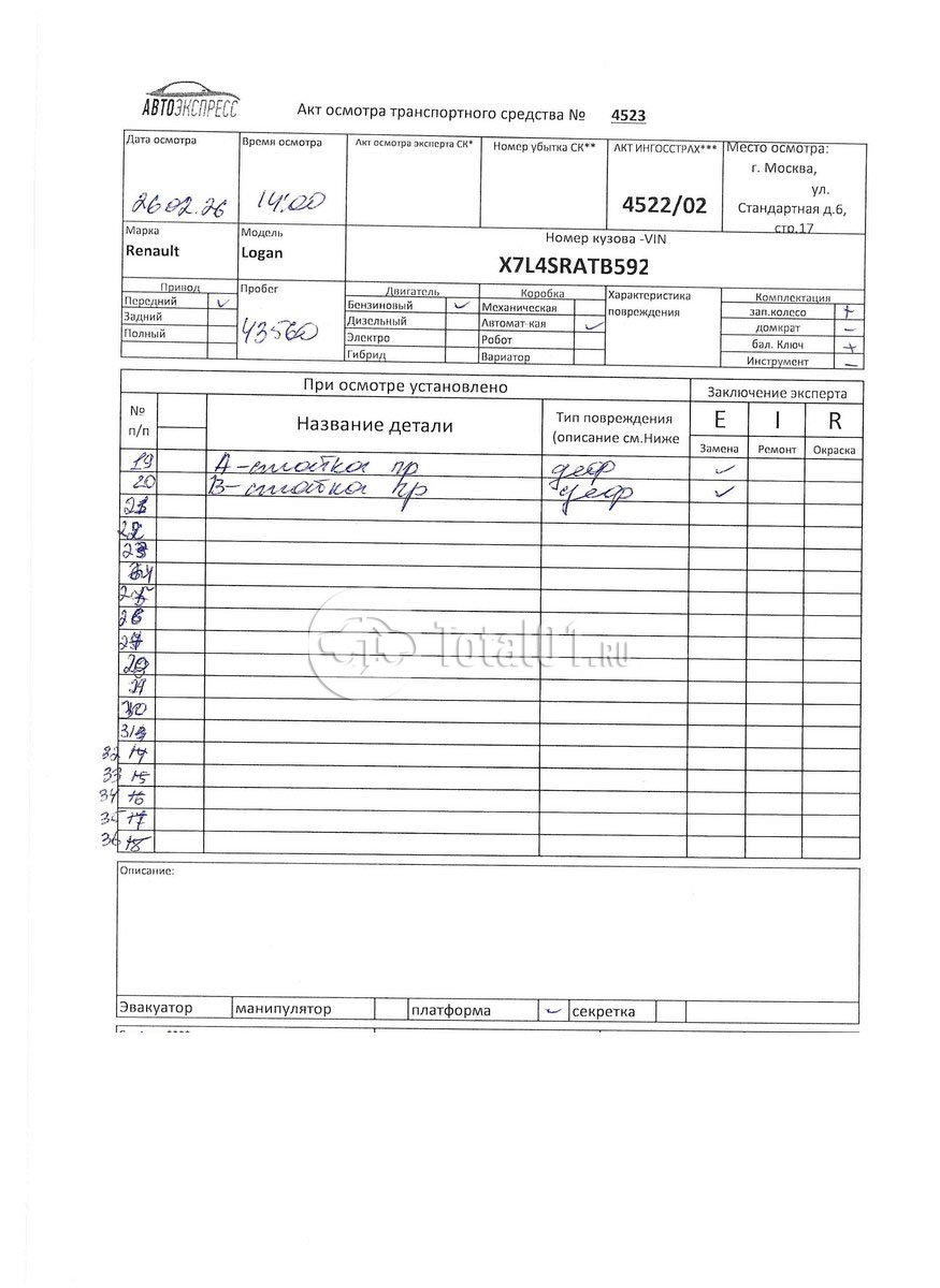 ПТС: Не передан (выдана справка). Вин номер предоставляется по запросу,направленному на адрес man4@total01.ru. Стоянка: ул.Стандартная, д.6, стр.17. Счет выставляется автомагазином ООО «Блицкар». (Сумма НДС будет указана в счет фактуре). Авто после ДТП, возможны скрытые повреждения. Гарантии юридической чистоты. Запчасти с авто отдельно не продаются. Цены по телефону не обсуждаются. ДКП и ПТС(если не изъят в ГИБДД) находятся в Москве. Возможности отправки документов нет. Для получения ДКП и ПТС(если не изъят в ГИБДД) потребуется ваше личное присутствие или нотариальная доверенность на вашего представителя. Передний удар; правый бок; левый бок; крыша; возможны скрытые повреждения. Ранее автомобиль находился в собственности физ.лица. Количество владельцев: н/у.