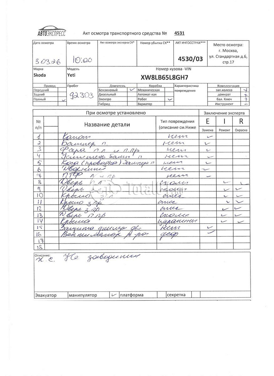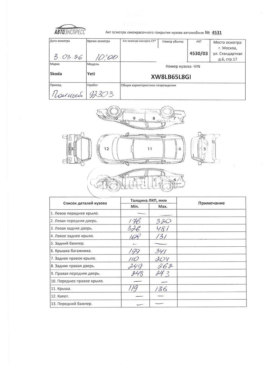 | Арка колесн п л.отремонтировать | 1123 | 10 |