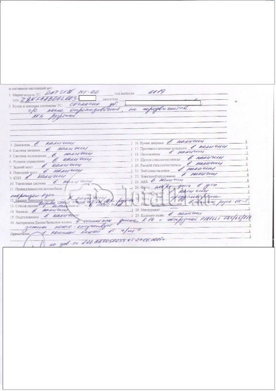 | Состояние ПТС | Отсутствует |