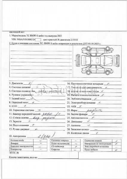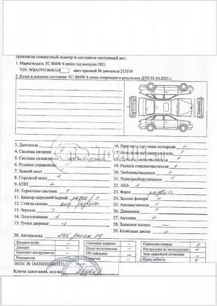 ПТС: Не передан (выдана справка). Вин предоставляется по запросу на почту manager01@total01.ru Стоянка: г. Тюмень, ул. Старый Тобольский тракт 1 километр, 25 ст5/3. Счет выставляется автомагазином ООО «Блицкар». (Сумма НДС будет указана в счет фактуре). Авто после ДТП, возможны скрытые повреждения. Гарантии юридической чистоты. Запчасти с авто отдельно не продаются. Цены по телефону не обсуждаются. ДКП и ПТС(если не изъят в ГИБДД) находятся в Москве. Возможности отправки документов нет. Для получения ДКП и ПТС(если не изъят в ГИБДД) потребуется ваше личное присутствие или нотариальная доверенность на вашего представителя. При получении транспортного средства в региональном филиале при себе иметь оригиналы: ДКП + ПТС (если не изъят в ГИБДД) + Нотариальная доверенность (если автомобиль получает представитель, или на бланке организации с печатью при оплате юр. лицом). Ранее автомобиль находился в собственности физ. лица. Пробег н/у. Кол-во владельцев: н/у. Передний удар; возможны скрытые повреждения.