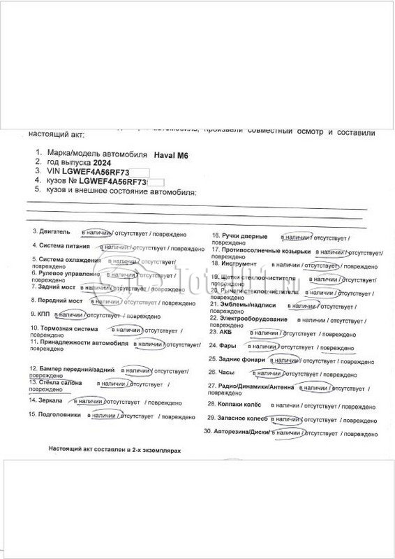 | Состояние ПТС | Отсутствует |