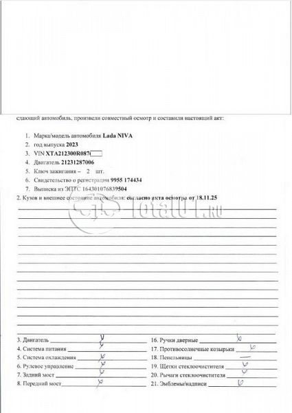ПТС: Не передан (выдана справка). Вин предоставляется по запросу на почту manager01@total01.ru Стоянка: г. Великий Новгород, ул. Октябрьская, д.15. Счет выставляется автомагазином ООО «Блицкар». (Сумма НДС будет указана в счет фактуре). Авто после ДТП, возможны скрытые повреждения. Гарантии юридической чистоты. Запчасти с авто отдельно не продаются. Цены по телефону не обсуждаются. ДКП и ПТС(если не изъят в ГИБДД) находятся в Москве. Возможности отправки документов нет. Для получения ДКП и ПТС(если не изъят в ГИБДД) потребуется ваше личное присутствие или нотариальная доверенность на вашего представителя. При получении транспортного средства в региональном филиале при себе иметь оригиналы: ДКП + ПТС (если не изъят в ГИБДД) + Нотариальная доверенность (если автомобиль получает представитель, или на бланке организации с печатью при оплате юр. лицом). Ранее автомобиль находился в собственности физ. лица. Пробег н/у. Кол-во владельцев: н/у. Левый передний удар; правый бок; крыша; возможны скрытые повреждения.