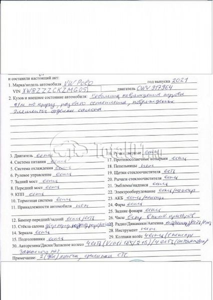 | Состояние ПТС | Отсутствует |