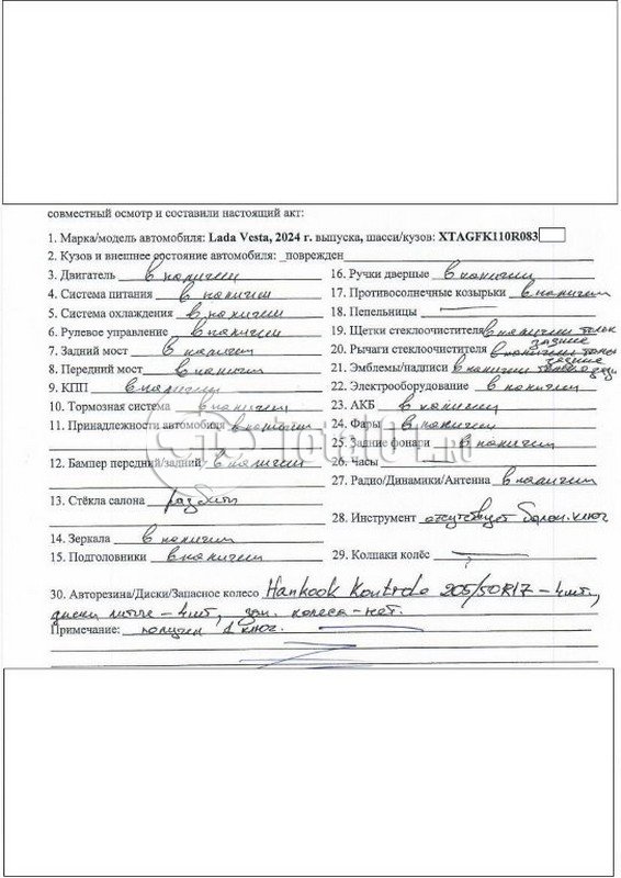 | Капот - заменить | Б/Н | 9 |