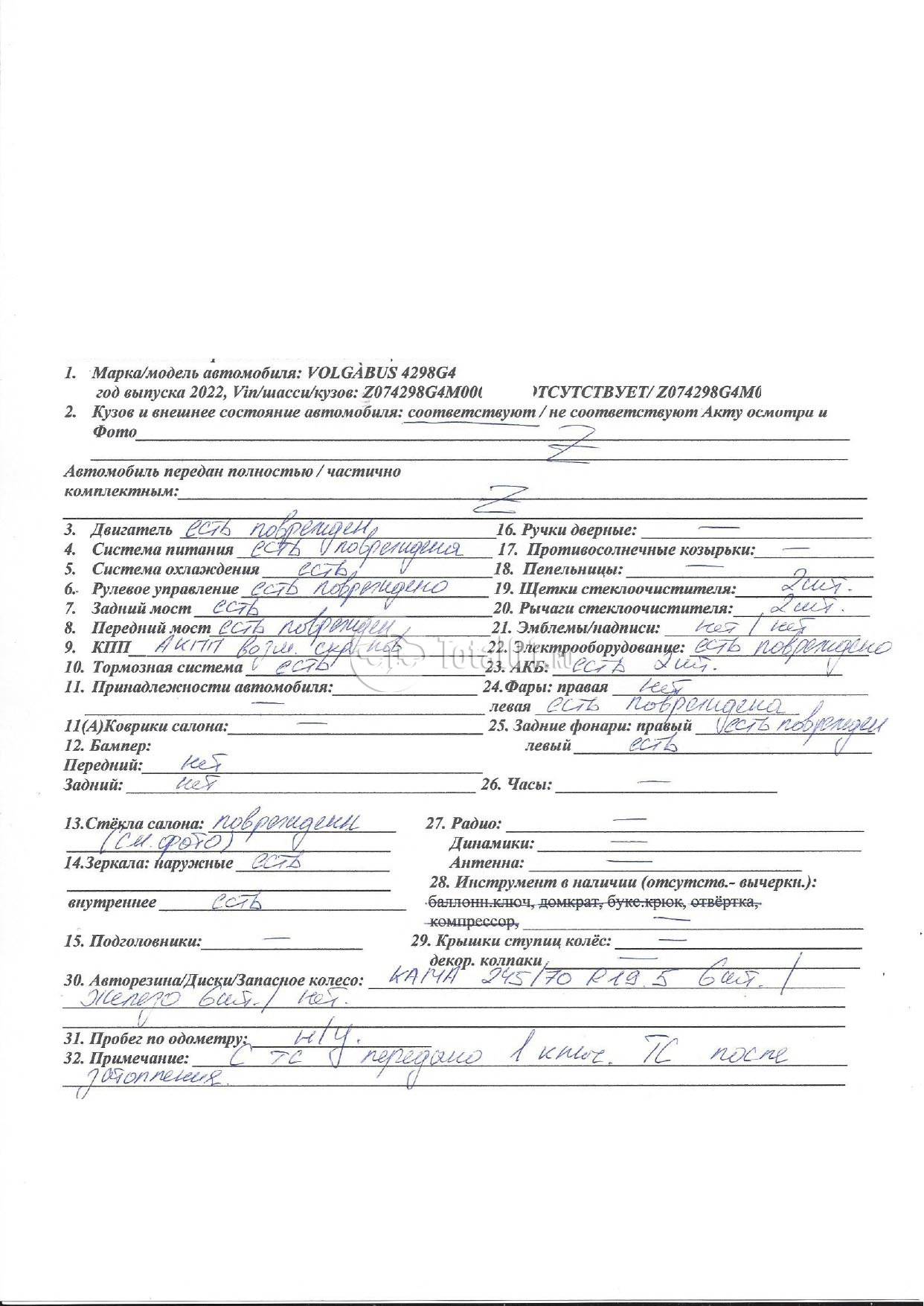 ПТС: Не передан (выдана справка). Вин предоставляется по запросу на почту manager01@total01.ru Стоянка: г. Санкт-Петербург, шоссе Революции, 116. Счет выставляется автомагазином ООО «Блицкар». (Сумма НДС будет указана в счет фактуре). Авто после ДТП, возможны скрытые повреждения. Гарантии юридической чистоты. Запчасти с авто отдельно не продаются. Цены по телефону не обсуждаются. ДКП и ПТС(если не изъят в ГИБДД) находятся в Москве. Возможности отправки документов нет. Для получения ДКП и ПТС(если не изъят в ГИБДД) потребуется ваше личное присутствие или нотариальная доверенность на вашего представителя. При получении транспортного средства в региональном филиале при себе иметь оригиналы: ДКП + ПТС (если не изъят в ГИБДД) + Нотариальная доверенность (если автомобиль получает представитель, или на бланке организации с печатью при оплате юр. лицом). Пробег:н/у. Кол-во владельцев: н/у. Ранее автомобиль находился в собственности юр.лица. Передний удар; автобус находился в воде; возможны скрытые повреждения.