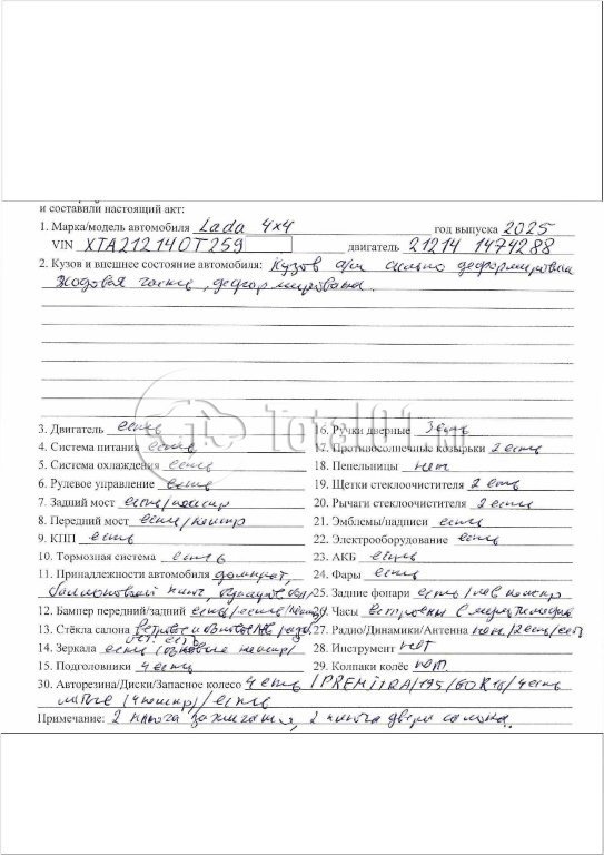 ПТС: Не передан (выдана справка). Вин предоставляется по запросу на почту manager01@total01.ru Стоянка: г. Сочи, ул. Просвещения, 139. Счет выставляется автомагазином ООО «Блицкар». (Сумма НДС будет указана в счет фактуре). Авто после ДТП, возможны скрытые повреждения. Гарантии юридической чистоты. Запчасти с авто отдельно не продаются. Цены по телефону не обсуждаются. ДКП и ПТС(если не изъят в ГИБДД) находятся в Москве. Возможности отправки документов нет. Для получения ДКП и ПТС(если не изъят в ГИБДД) потребуется ваше личное присутствие или нотариальная доверенность на вашего представителя. При получении транспортного средства в региональном филиале при себе иметь оригиналы: ДКП + ПТС (если не изъят в ГИБДД) + Нотариальная доверенность (если автомобиль получает представитель, или на бланке организации с печатью при оплате юр. лицом). Ранее автомобиль находился в собственности физ. лица. Пробег н/у. Кол-во владельцев: н/у. Левый бок; правый бок; крыша; возможны скрытые повреждения.
